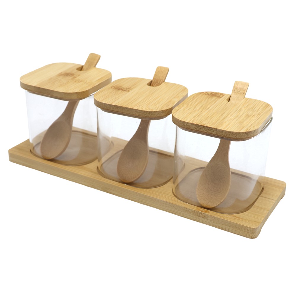Set kavanoza konservimi me lugë (PK 3), qelq / bambu, transparente, 350 ml