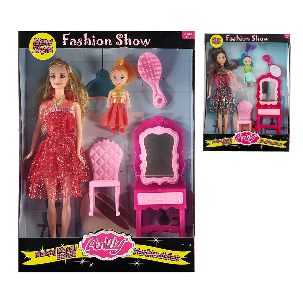 Set lodër për vajza, i cili përfshin një kukull, një kukull të vogël, një karrige, një krehër për flokët dhe një tavolinë kozmetike, me pasqyrë dhe sirtar. Ky set ndihmon në zhvillimin e imagjinatës, zhvillimin e shqisave dhe zhvillimin e aftësive të të mësuarit tek fëmijët, përmes lojës në role. Materiali përbërës dhe boja nuk kanë përmbajtje toksike apo të dëmshme për fëmijët dhe produkti është i çertifikuar për siguri në përdorim. Ky produkt është i përshtatshëm për përdorim nga fëmijë të moshës mbi 3 vjeç.