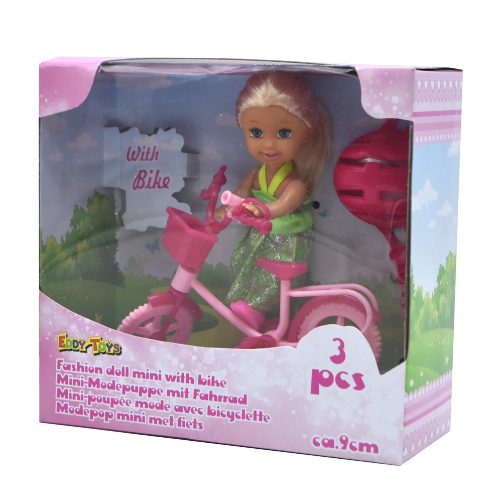 Set lodër për fëmijë, i cili përmban një kukull të vogël dhe një biçikletë. Kjo lodër ndihmon në zhvillimin e imagjinatës dhe kreativitetit, zhvillimin e aftësive motorike dhe zhvillimin e aftësive të të mësuarit tek fëmijët e vegjël. Materiali përbërës dhe boja nuk kanë përmbajtje toksike apo të dëmshme për fëmijët dhe produkti është i çertifikuar për siguri në përdorim. Ky produkt është i përshtatshëm për përdorim nga fëmijë mbi 3 vjeç.