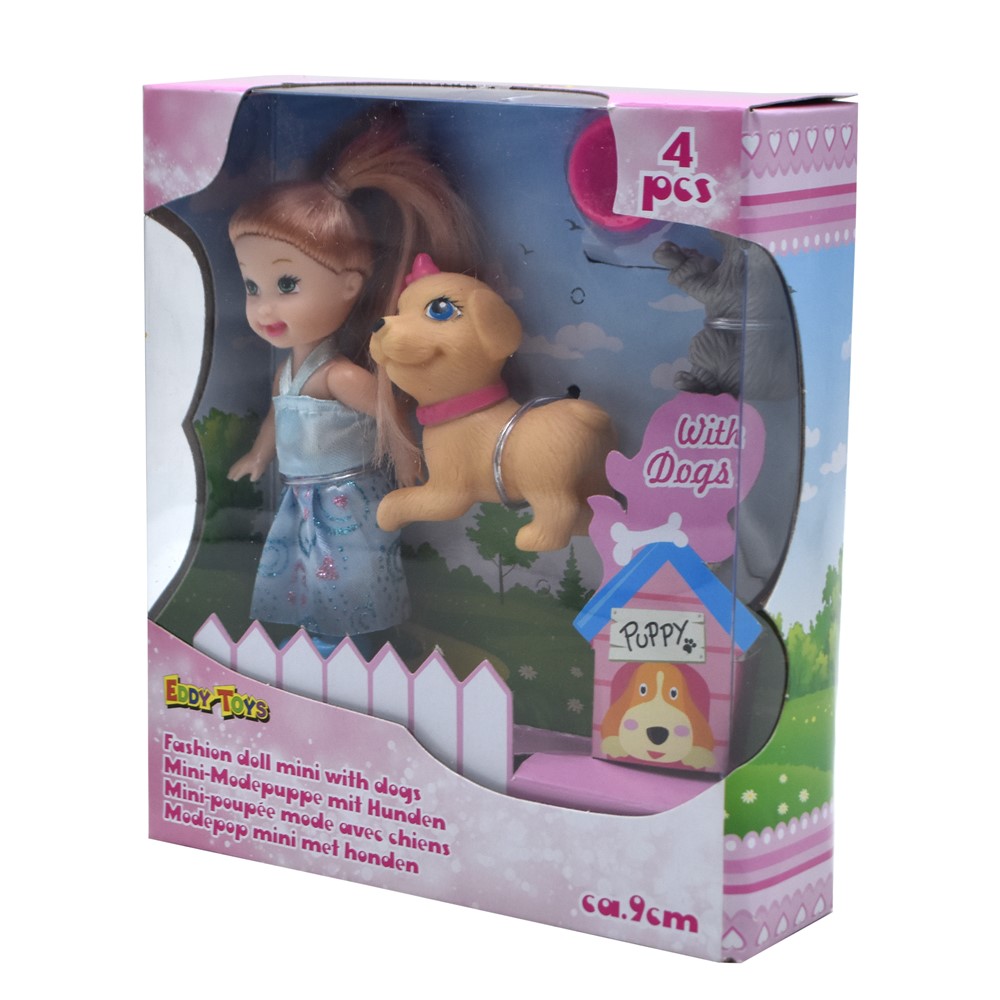 Set lodër për fëmijë, kukull e vogël me qenush, My Pets, Eddy Toys, plastikë, 9 cm, rozë, 1 copë