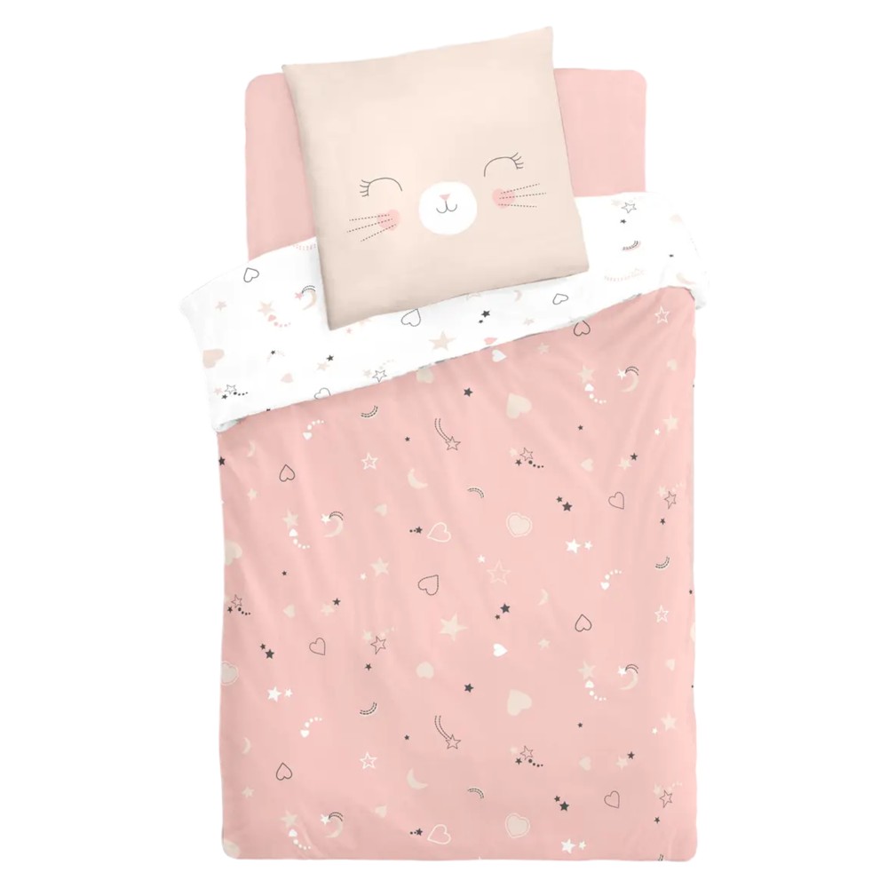 Set carcaf për fëmijë, prej material pambuku antialergjik. Seti përmban një këllëf jorgani dhe një këllëf jastëku, në ngjyrë rozë, në përmasë 200x140 cm.