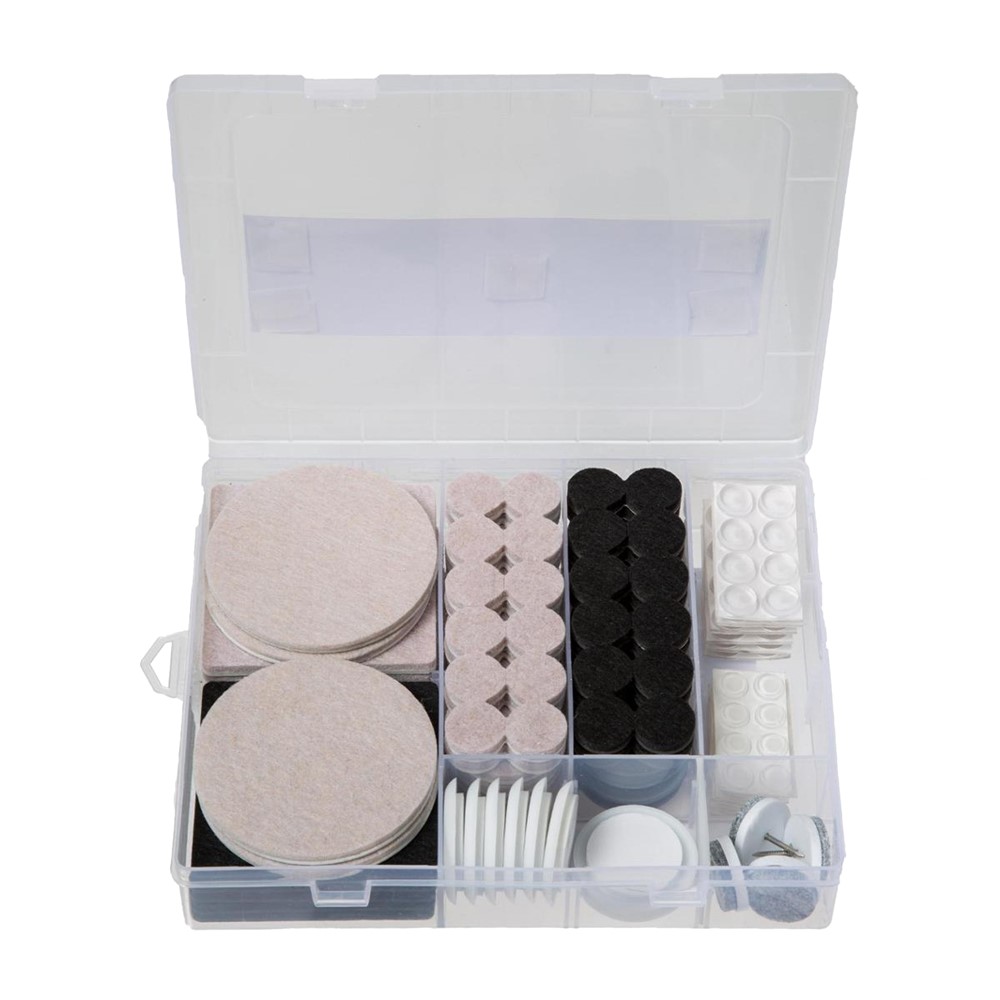 Set me aksesorë për këpucët, i cili përmban 4 copëza fibre në formë katrore, me përmasa 7.5x7.5 cm, 4 copëza në formë rrethore me diametër 7.5 cm, 26 copëza me diametër 3.8 cm, 72 copëza me diametër 1.9 cm, 64 aksesorë prej polipropileni me përmasa 1.3x4 cm, 56 aksesorë prej materiali PVC-je me përmasa 1x3 cm dhe 4 aksesorë me kunja për taka, me diametër 2.4 cm prej materiali PVC-je. Përdoren për riparimin e takave të këpucëve, majave të këpucëve ose për t'u vendosur në pjesën e jashtme të tyre për t'i bërë më pak të rrëshqitshme.