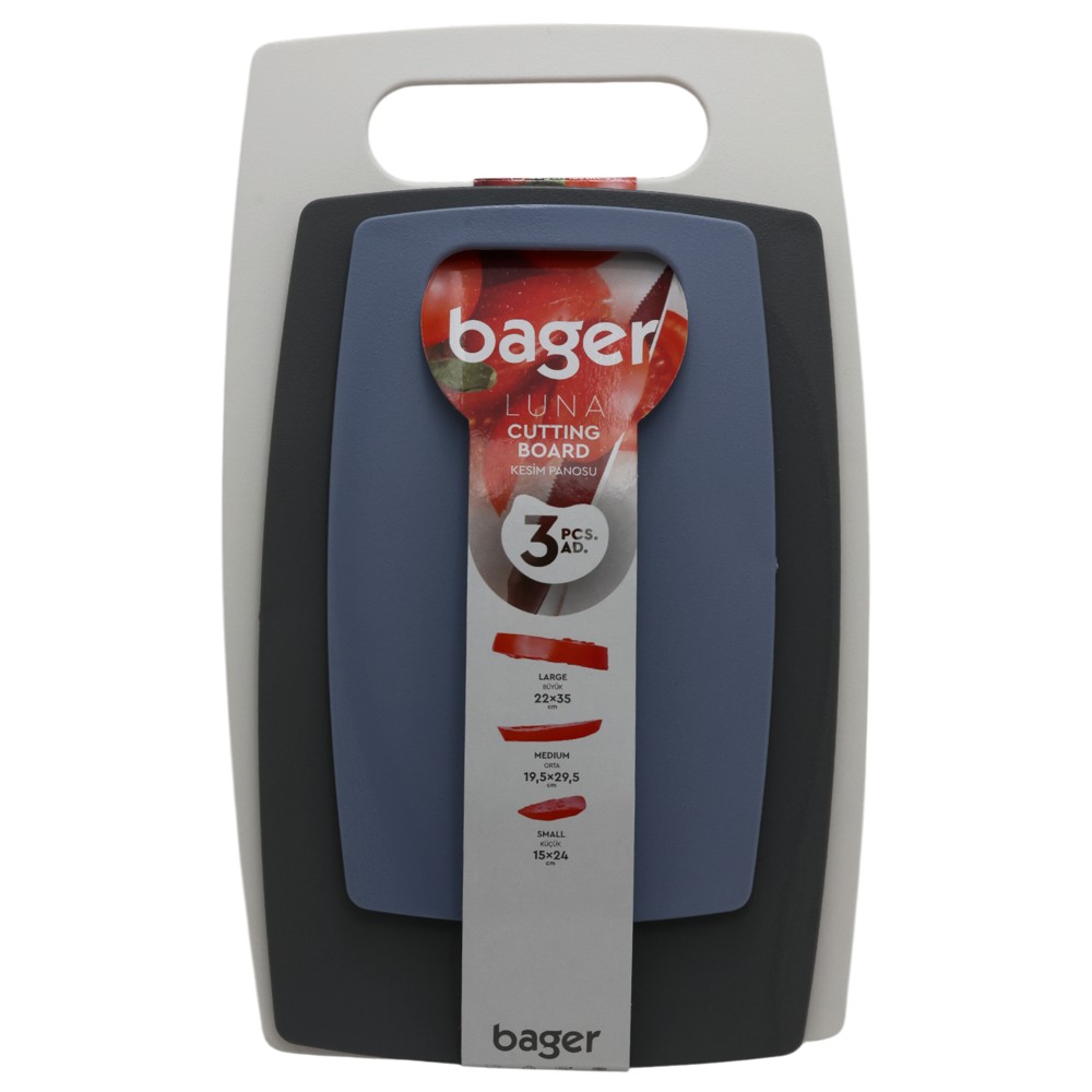 Set me bazë prerëse Luna (3 copë), plastike, ngjyra të ndryshme, 35x22x1.5 cm