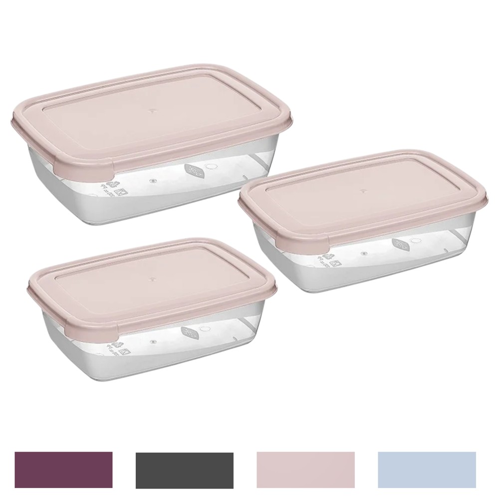Set me enë ushqimi me kapak Cook&Keep (3 copë), PP/Silikon, transparente/ngjyra të ndryshme, 300 ml / 13x9.5x7.5 cm