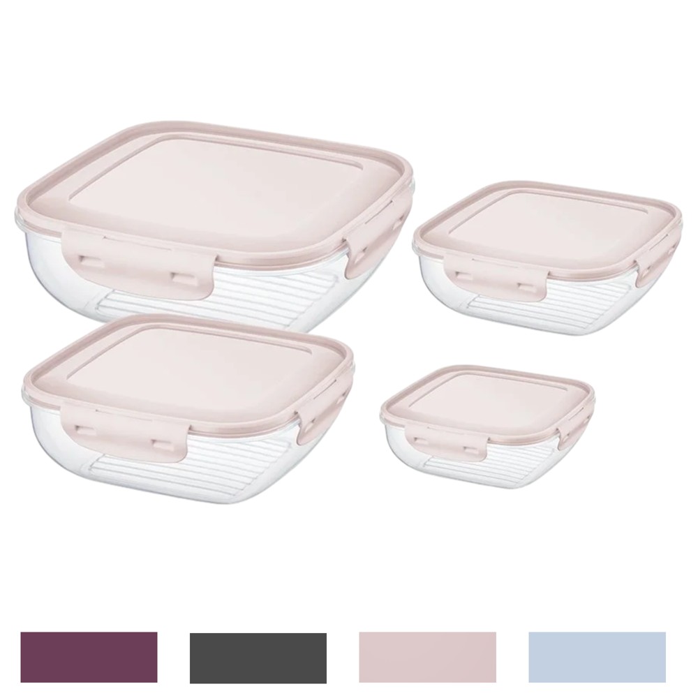 Set me enë ushqimi me kapak Cook&Lock (4 copë), PP/Silikon, transparente/ngjyra të ndryshme, 350 / 650 / 1100 / 1800 ml / 19.5x19.5x7 cm