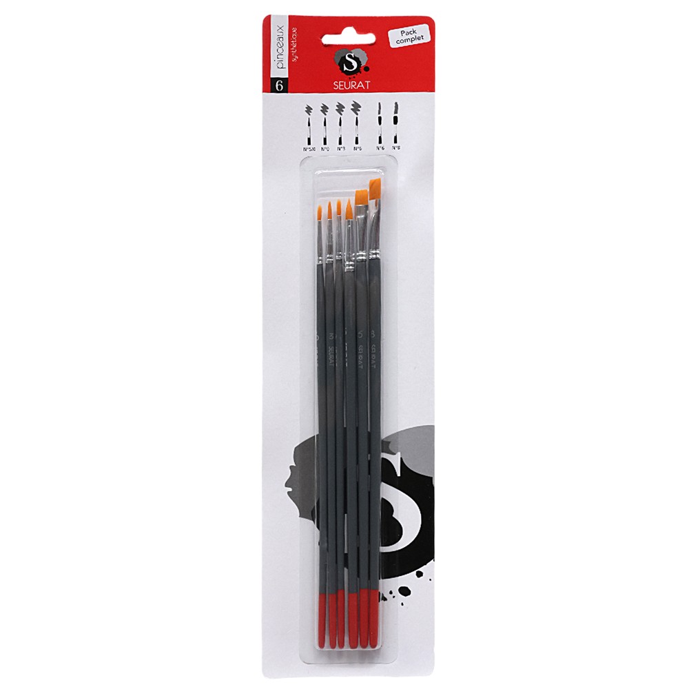 Set me penel për pikturë, Seurat, i përbërë nga gjashtë penela me gjatësi 20 cm dhe bisht druri. Përdoret për aplikimin e ngjyrave në teknika të ndryshme pikture si akrilik, akuarel apo tempera, duke ofruar precizion dhe kontroll gjatë punës artistike. Penelët janë të pajisur me fije sintetike rezistente dhe bisht ergonomik prej druri, që siguron komoditet gjatë përdorimit të zgjatur. Ky produkt është i përshtatshëm për përdorim profesional nga artistë dhe studentë arti, si dhe për përdorim jo-profesional nga amatorë dhe fëmijë të apasionuar pas pikturës.
