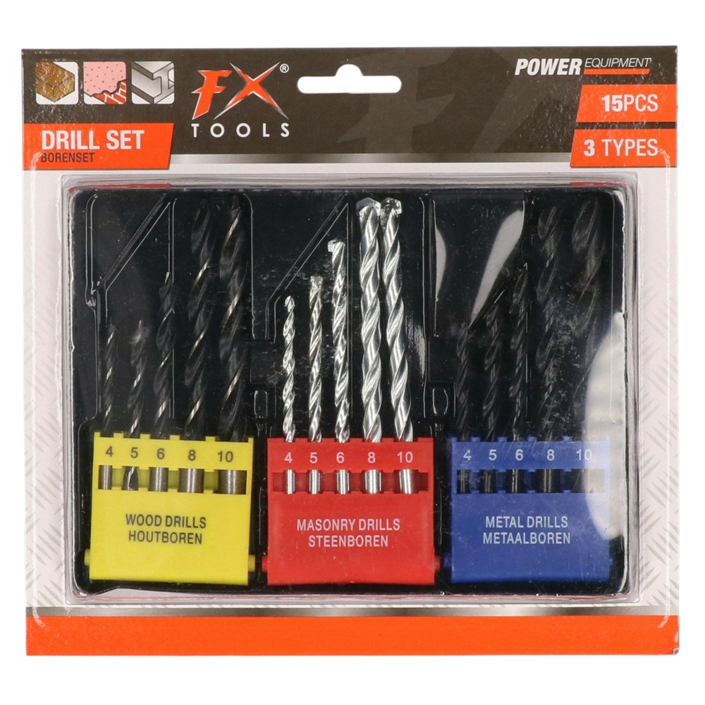 Set me punto, FX Tools, 15 copë, për dru, beton, metal, 4,5,6,8,10 mm
