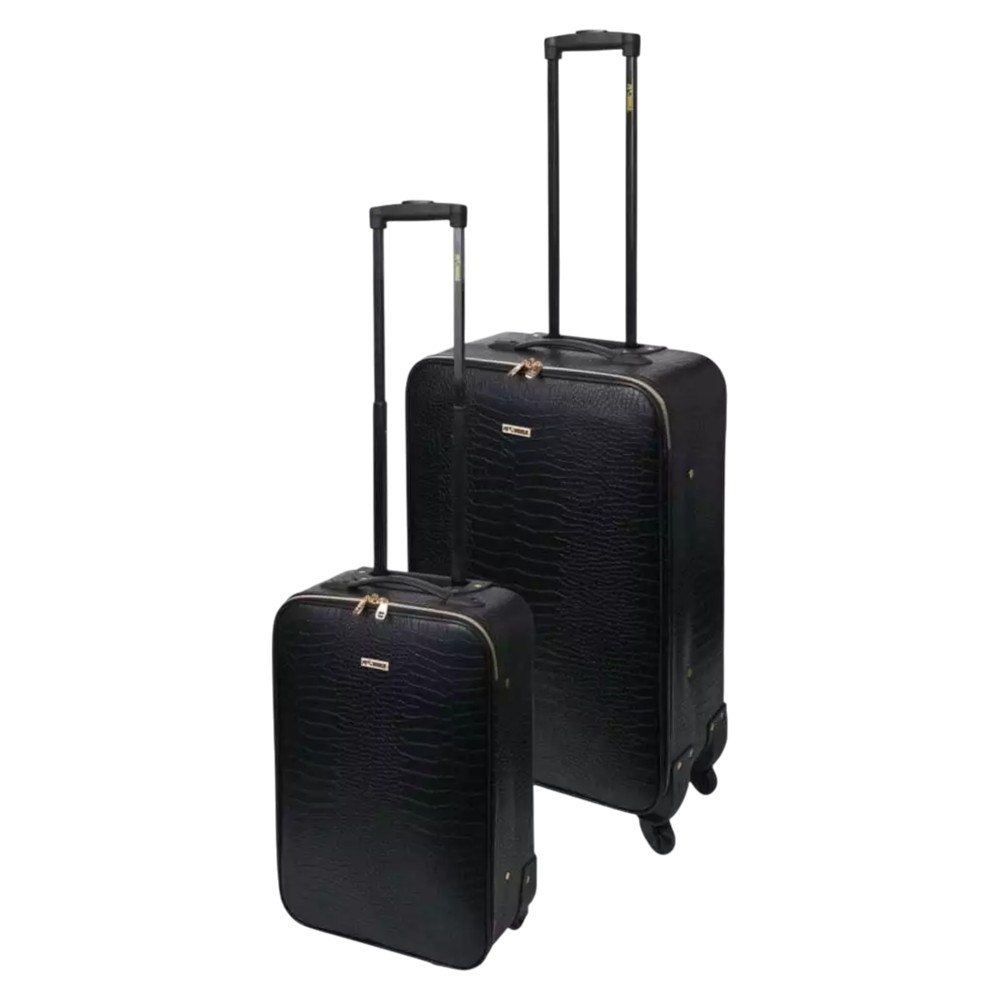 Set me dy valixhe të stilit modern dhe elegant, të bëra nga material croco i cili ofron një pamje të veçantë dhe një qëndrueshmëri të lartë. Ky set përfshin një valixhe 20 inch për udhëtime të shkurtra dhe një valixhe 24 inch për udhëtime më të gjata, duke ofruar fleksibilitet për çdo lloj udhëtimi. Materiali croco është jo vetëm i qëndrueshëm dhe i fortë, por gjithashtu i jep një shkëlqim të veçantë dhe një ndjesi luksoze. Valixhet janë të pajisura me rrota të forta për lëvizje të lehtë dhe doreza të qëndrueshme për transportim të lehtë. Brendësia është e organizuar për t'u përshtatur me nevojat e udhëtarëve, duke siguruar hapësirë të mjaftueshme dhe ndarje për mbajtjen e rrobave dhe sendeve të tjera. Ky set i kombinuar është zgjedhja ideale për ata që kërkojnë stil, funksionalitet dhe qëndrueshmëri gjatë udhëtimeve.