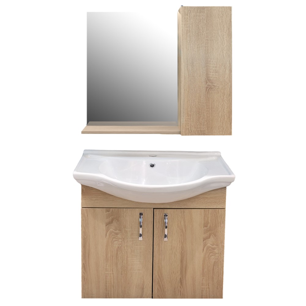 Seti i Mobilje tualeti'' SQUARE 80 '' montim në mur, ngjyrë dru arre prezanton modelin elegant që gjallëron tualetin tuaj. Lavamani i bardhe porcelani ofron stil në dekorin e tualetit tuaj, lehtësi për t’u pastruar duke siguruar një pamje të bukur dhe shume moderne per tualete me hapesira mesatare. Materiali i mobiljeve prej MDF është rezistent ndaj lagështirës. Ngjyra e bardhe kompozohet shumë mirë në ambiente me pllaka moderne njëngjyreshe dhe me motive të ngjyrave të ndryshme. Seti përfshin lavamanin, dollapin poshtë tij dhe pasqyrën, të gjitha të paketuara për një montim shumë të thjeshtë dhe të shpejt nga cilido.