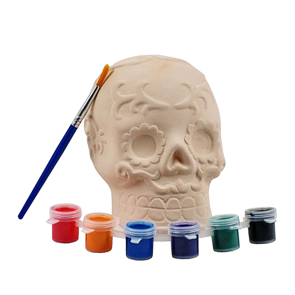 Set ngjyrues, e cila përmban një gjashtë ngjyra dhe një kafkë për ngjyrosje. Ajo ka një përmasë 10x10x10 cm, dhe është prej material qeramike. Pas ngjyrosjes mund të përdoret si dekor në halloween.