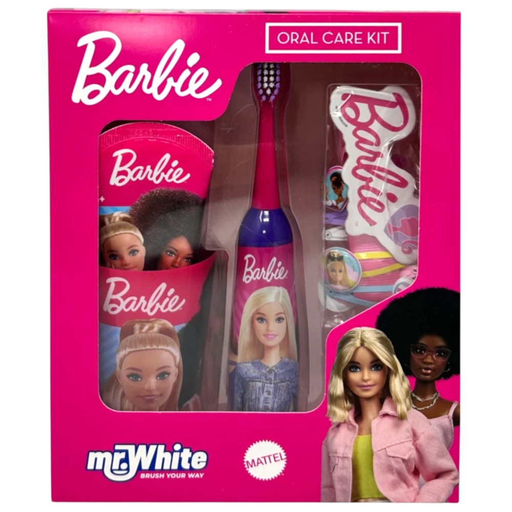 Set për fëmijë, Mr White, Barbie, pastë dhëmbësh + furcë + mbajtëse + kapëse flokësh, 1 pako