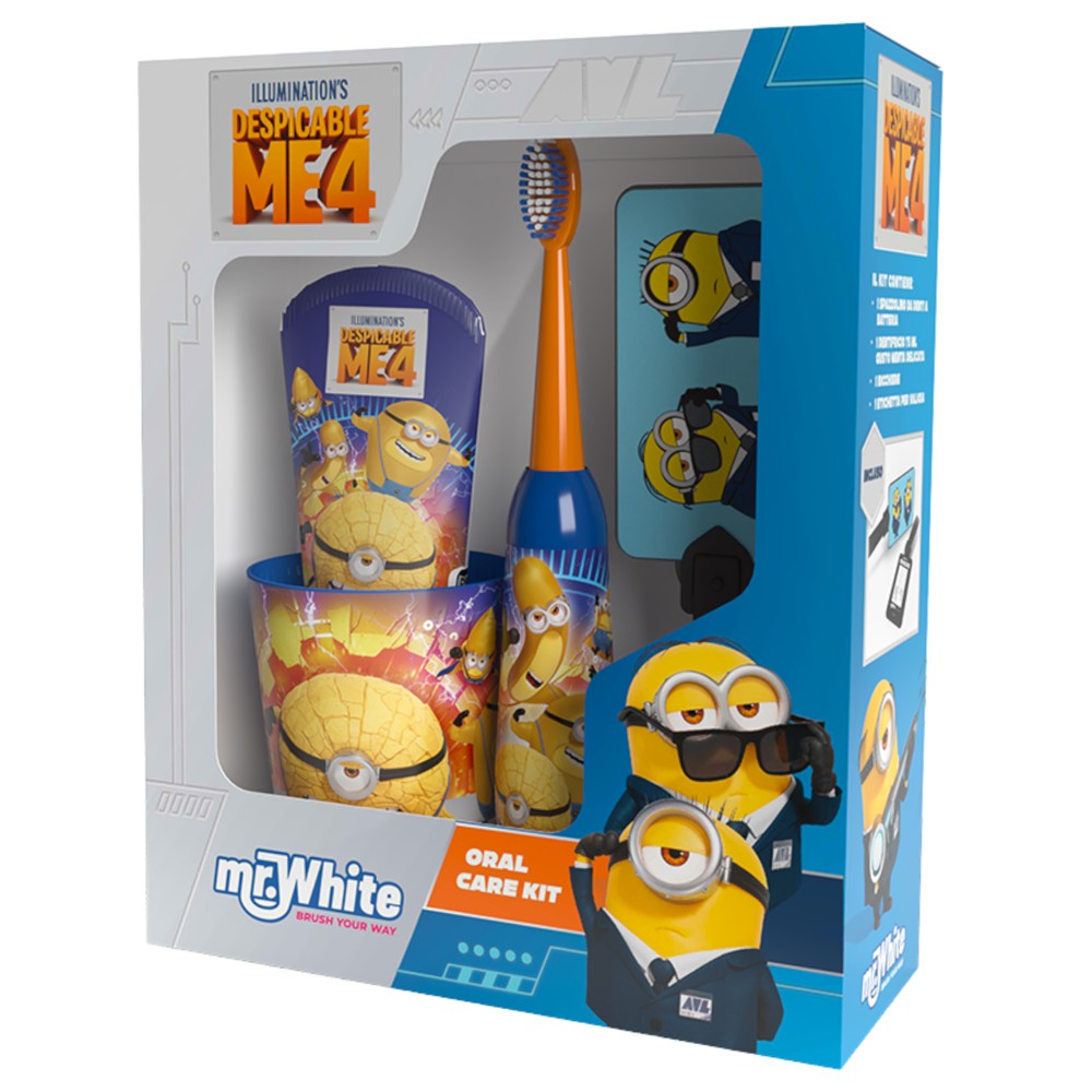 Set për fëmijë, Mr White, Minions, pastë dhëmbësh + furcë + mbajtëse, +3 vjec, e verdhë, 1 pako