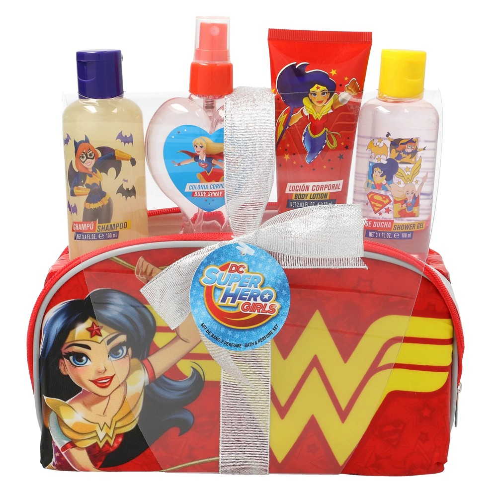 Set për fëmijë Superhero girls. Seti përmban një cologne 120 ml, xhel dushi 100 ml, një shampo 100 ml, dhe një lotion trupi 60 ml. Të gjitha këto janë të vendosura në një cantë.