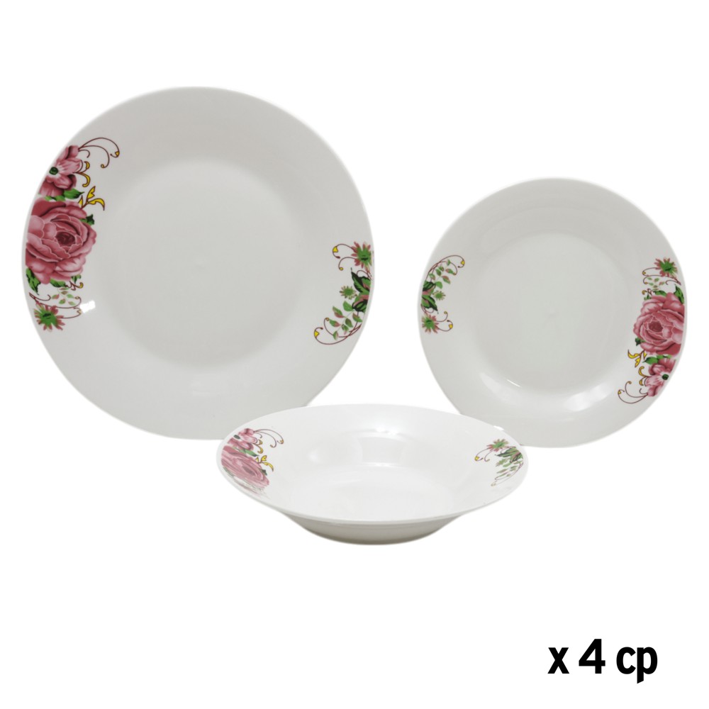 Krijoni kujtime të paharrueshme me këtë set pjatash porcelani elegant dhe funksional. Dizajni i tij klasik në ngjyrë të bardhë dhe me dizenjo lulesh e bën të përshtatshëm për çdo stil kuzhine, ndërsa porcelani i lartë e bën rezistent dhe të lehtë për t'u pastruar. Përsosur për çdo rast, nga darkat familjare ose për pritjet e miqve, ky set do të bëjë që çdo vakt të ndihet special. Seti përfshin: 4 pjata servirje Ø26.5 cm, 4 pjata supe Ø20 cm dhe 4 pjata ëmbëlsire Ø20 cm.