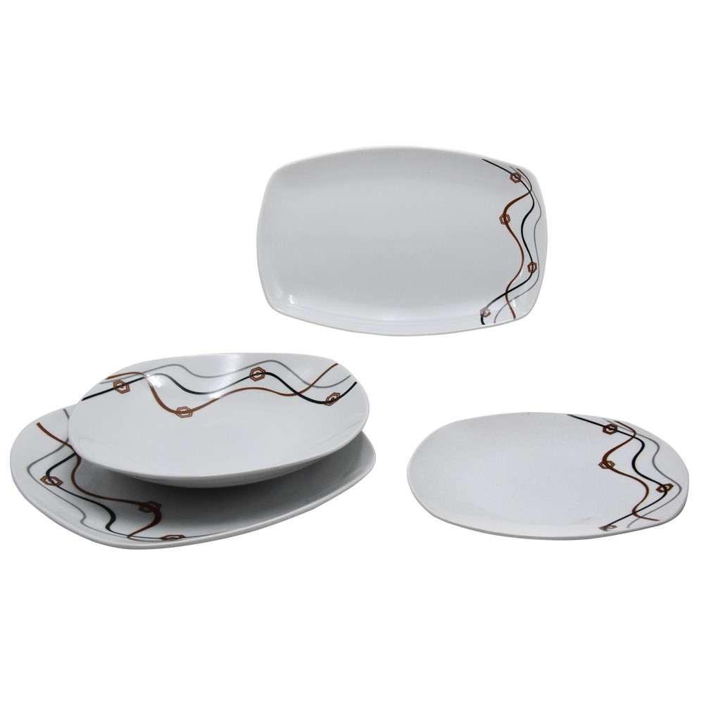 Set pjatash, porcelan, e bardhë, dizenjo me vija, 20 copë