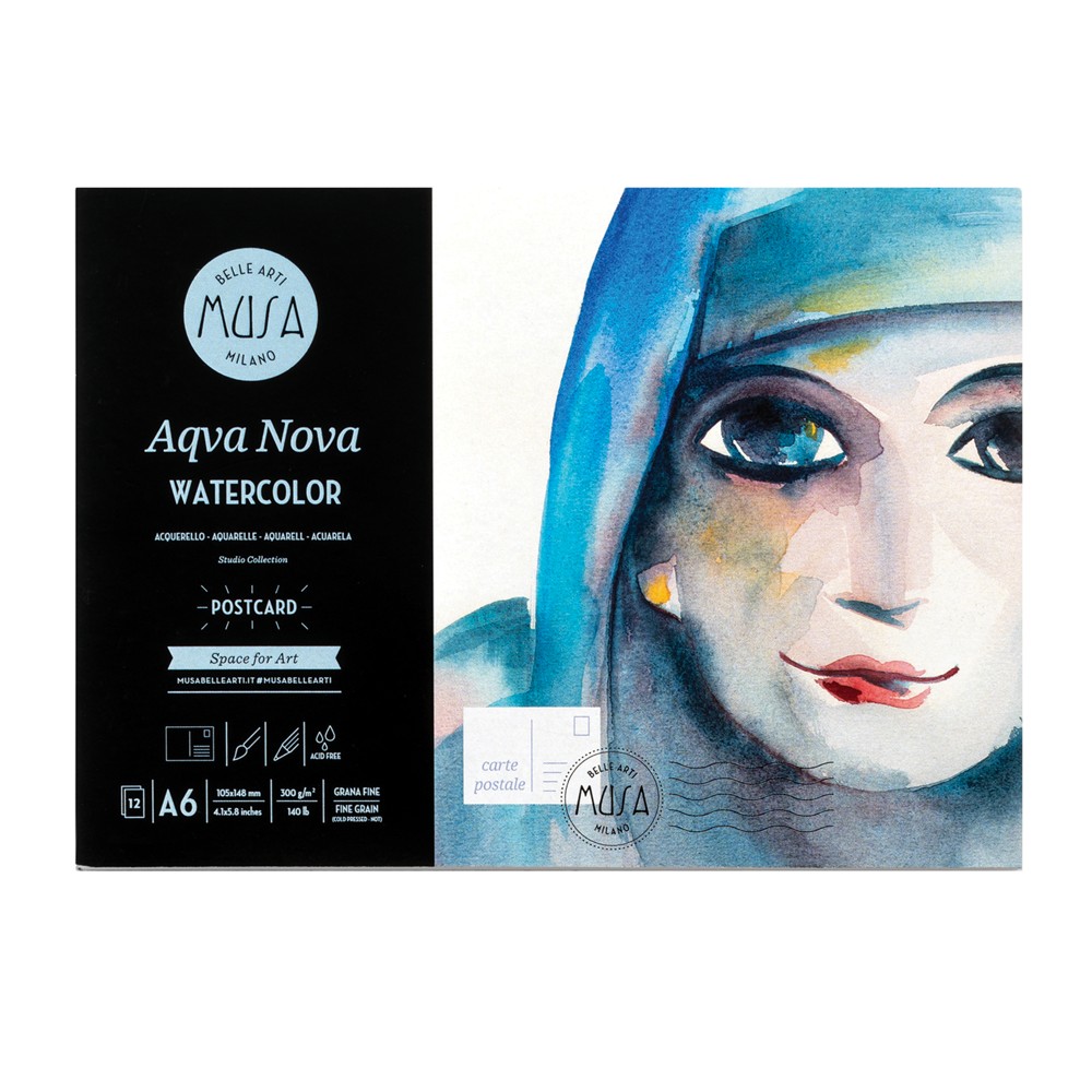 Set postcard, Musa, A6, 300g. Ka një përbërje të imët dhe është krejtësisht pa acide dhe agjentë ndriçues optikë. Ka cilësi të shkëlqyera si rezistenca e lartë ndaj zverdhjes, qëndrueshmëria e ngjyrave dhe neutraliteti i pH. Lehtë për t'u përdorur pasi garanton thithjen e shkëlqyer të ngjyrave dhe lehtësinë e fshirjes. I përshtatshëm për studentët dhe hobistët në kohën e lirë.Përshtatet si me teknikat e thata ashtu edhe me të gjitha ato të lagura: bojëra uji, gouache, akrilik.