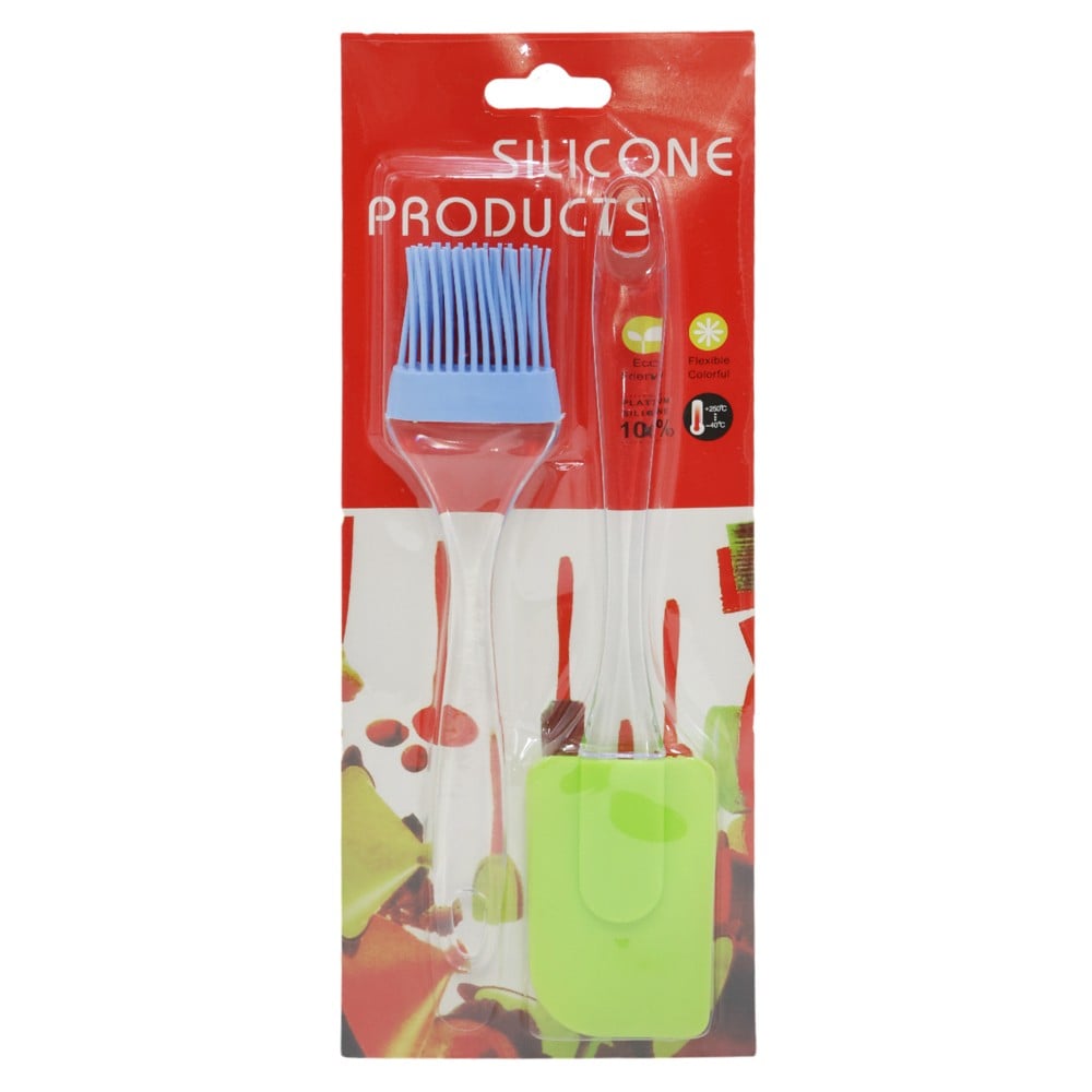 Set gatimi me spatula dhe furçë nga plastika dhe silikoni në ngjyrën transparente, me gjatësi 24 cm. Pjesë e nevojshme për çdo kuzhinë, ofrojnë lehtësi përdorimi dhe pastrimi.