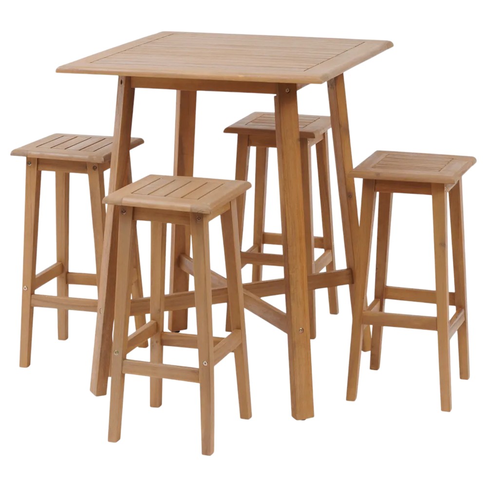 Po vlerësoni:Set Tiwi, tavoline bari + stola, dru tropikal Acacia, ngjyre natyrale, tavolina 800x800x1020 mm, karrige W320x320x710 mm