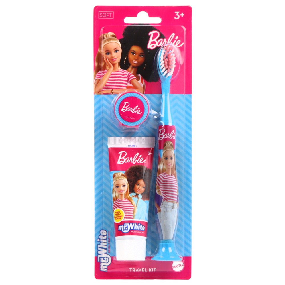 Set udhëtimi për fëmijë, Mr White, Barbie, pastë dhëmbësh 25 ml + furcë, +3 vjec, 1 pako