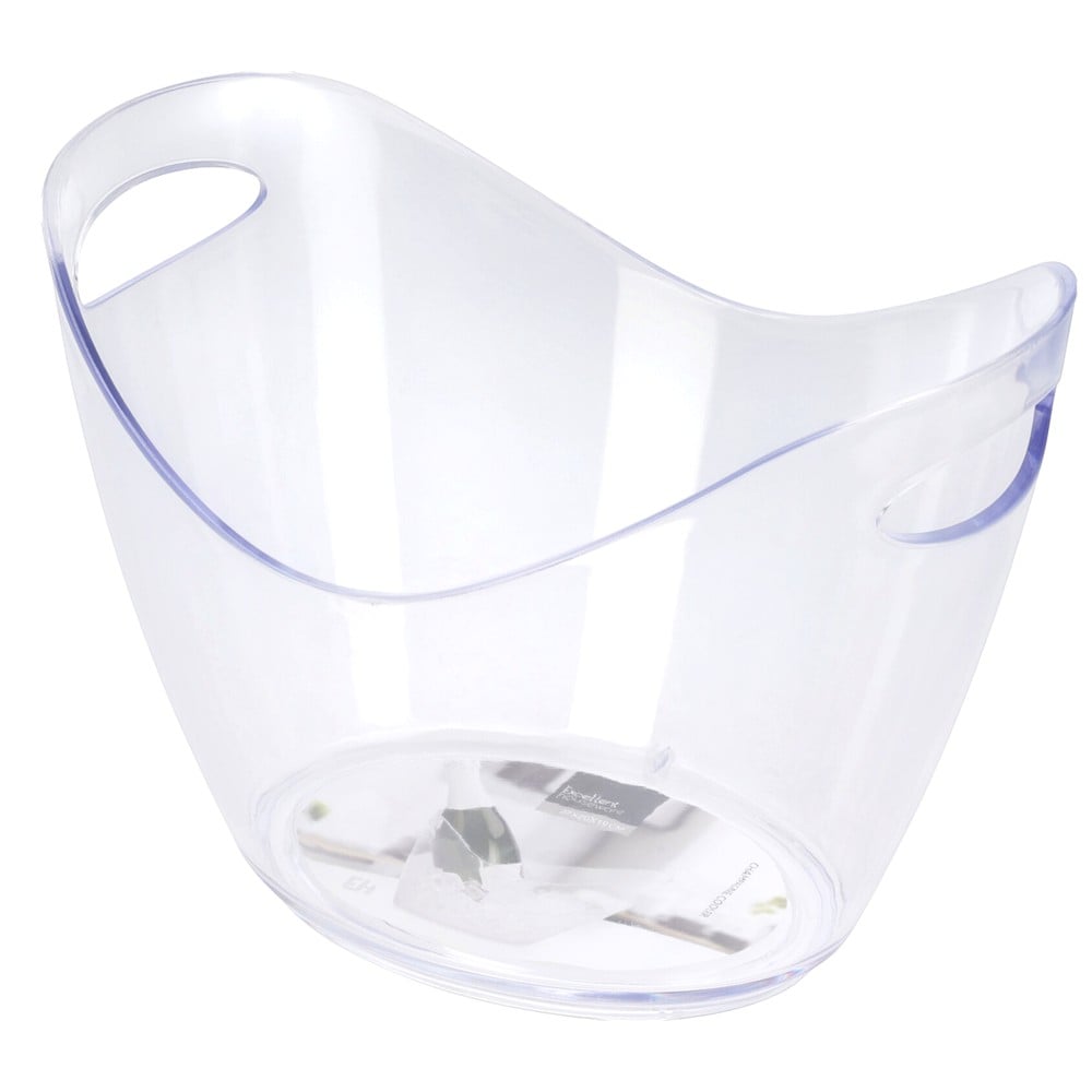 Kjo shampanjerë elegante prej polistireni transparent është zgjidhja ideale për të servirur pije të ftohta me stil. Me përmasa 27x20x19.6 cm, ofron hapësirë të mjaftueshme për një ose më shumë shishe të vogla shampanje apo vere, së bashku me akullin. Materiali polistiren është i lehtë, rezistent dhe vizualisht tërheqës, duke krijuar një efekt xhami pa rrezikun e thyerjes. Transparenca lejon një paraqitje estetike të përmbajtjes, ideale për përdorim në festa, evente apo ambiente mikpritëse.