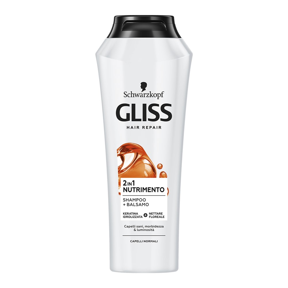 Shampo dhe balsam 2 në 1 për flokët, Gliss, plastikë, 250 ml, e bardhë dhe gold, 1 copë
