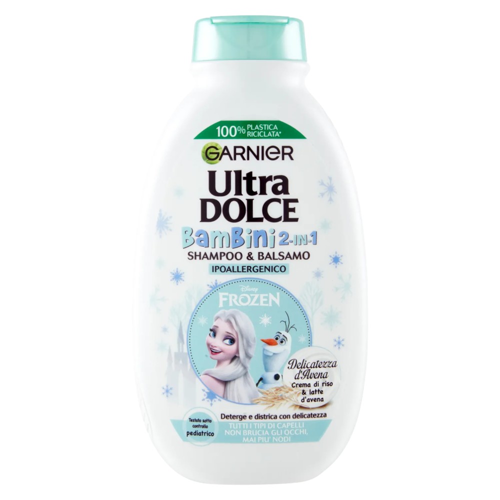 Shampo dhe balsam Ultra Dolce Garnier, 2 në 1 me tërshërë që pastron zbut flokët. Falë tërshërës, ajo zbut butësisht, hidraton dhe mbron. I përshtatshëm për të gjitha llojet e flokëve, është me origjinë natyrale, pa silikon dhe hipoalergjik.