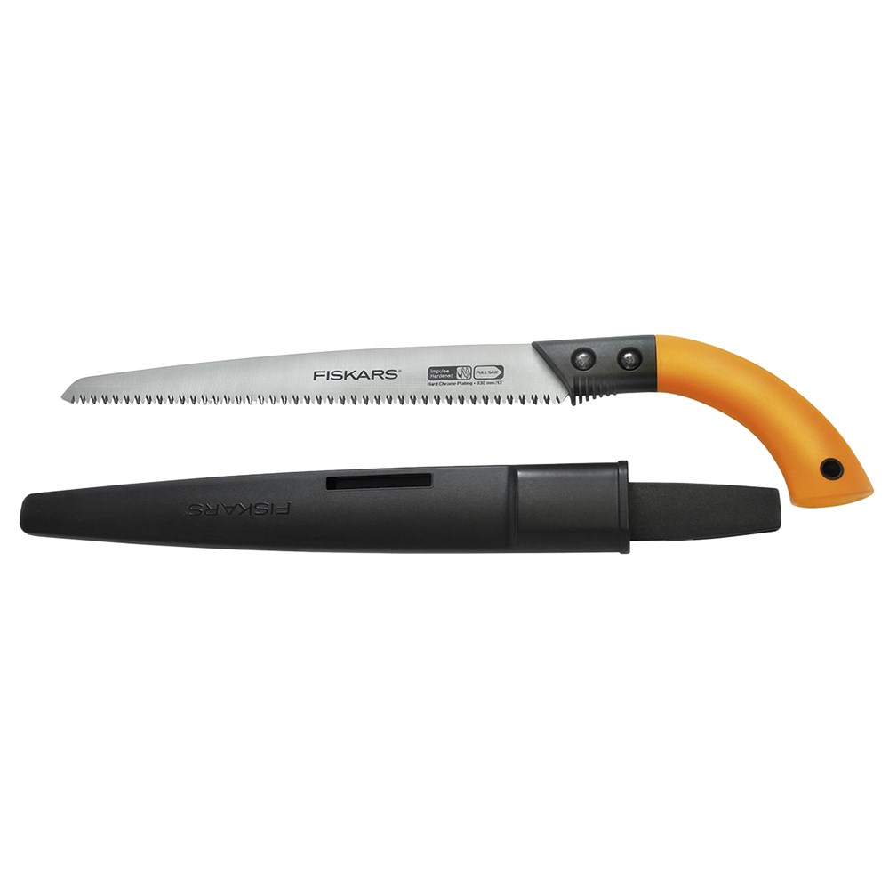 Sharre druri Fiskars me tehe për prerje deri në 150 mm në sajë të profilit të saj shumë të efektshme, dhëmbëve duke bërë të mundur shpejtësi dhe të saktë. Kjo eshte një sharrë shumë të mirë per pemë. Rehatia e saj në dorë është e garantuar falë SoftGrip ™ dorezë e saj ergonomik lakuar. Si sharrat e tjera në këtë kategori, . Gjatësia e tehut është vendosur në 330mm.