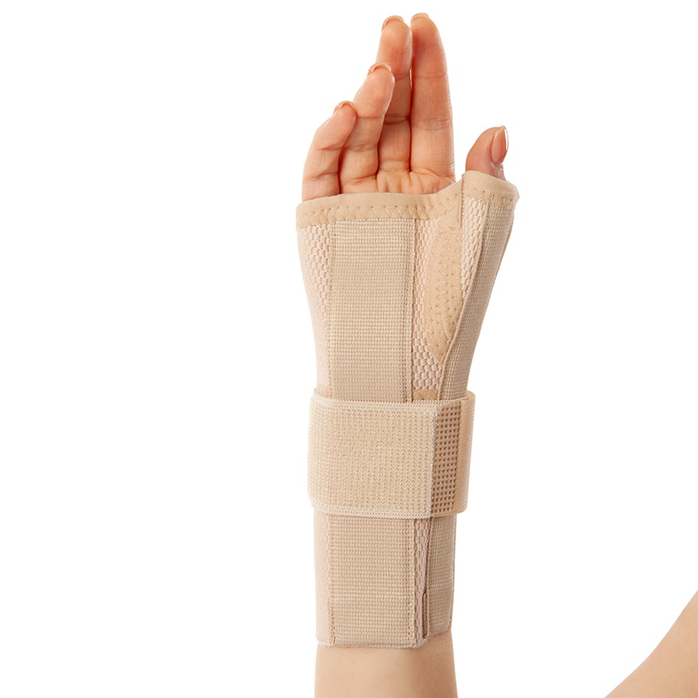Shinë mbështetëse për kyçin e dorës, e përforcuar me dy mbajtëse alumini për gishtin e madh dhe për kyçin e dorës. Përdoret për të reduktuar lëvizjen dhe peshën e ushtruar në kyçet e duarve, si edhe shërben në trajtimin e sinovitit të tendinave dhe në trajtimin e sindromës së tunelit karpal. Ky produkt prodhohet veçmas për dorën e majtë dhe të djathtë.