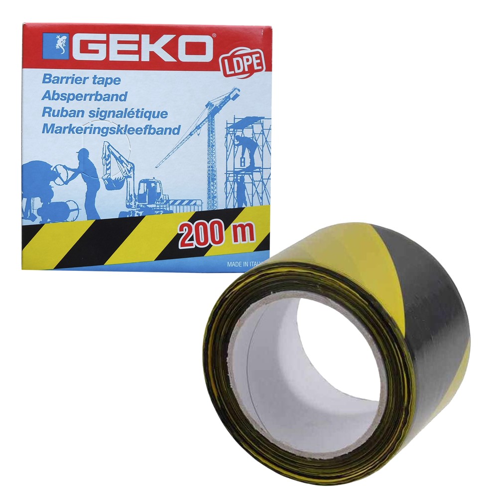 Po vlerësoni:Shirit kufizimi, Geko, 70 mm x 200 m, ngjyra e verdhe me te zeze