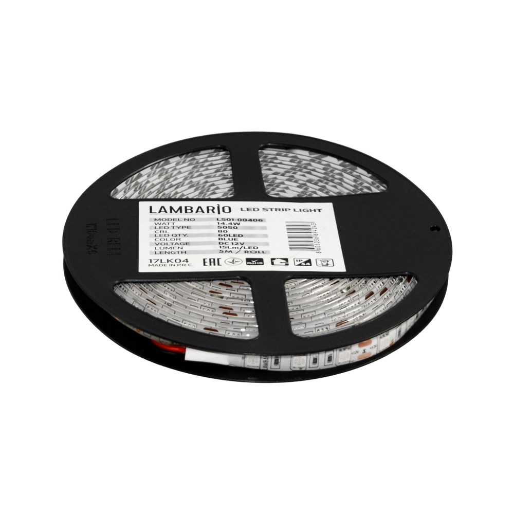 Shirit ndriçimi LED Lambario 5050, 14.4 W, 60 LED/m, 12 V-DC, ndriçim blu, IP54, 5m/pack