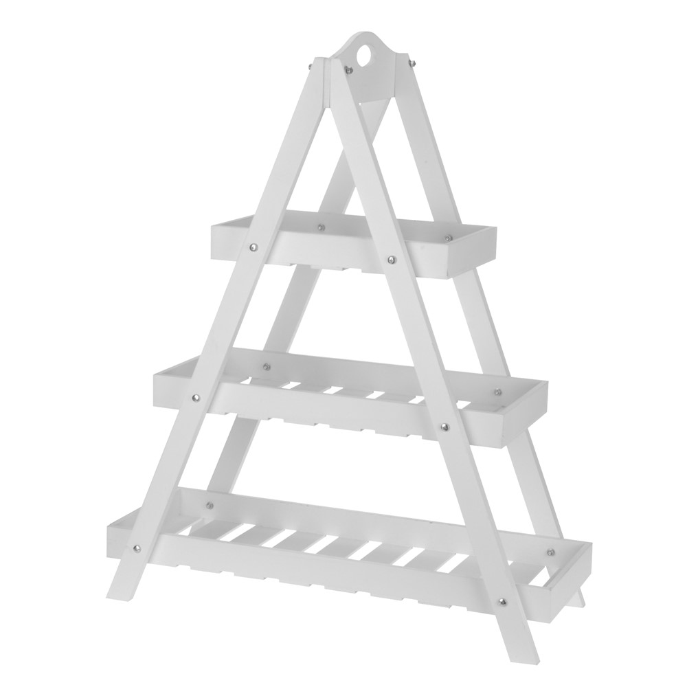 Shkallë për lulet me 3 kate prej druri në ngjyrë të bardhë e përshtatshme për çdo bimë në vazo. Një dizajn interesant përshtatet mrekullisht në rregullimet e ballkonit ose tarracës. Përdoret gjithashtu në lulishte, restorante ose kopshte. Në mënyrë që shtëpia të thithë harmoninë e luleve, është e nevojshme t'i vendosni në këtë shkallë fantastike në ngjyrë të bardhë, ku secila lule që do vendosni në të do të paraqitet bukur dhe do t'i japë dhomës tuaj shkëlqim.