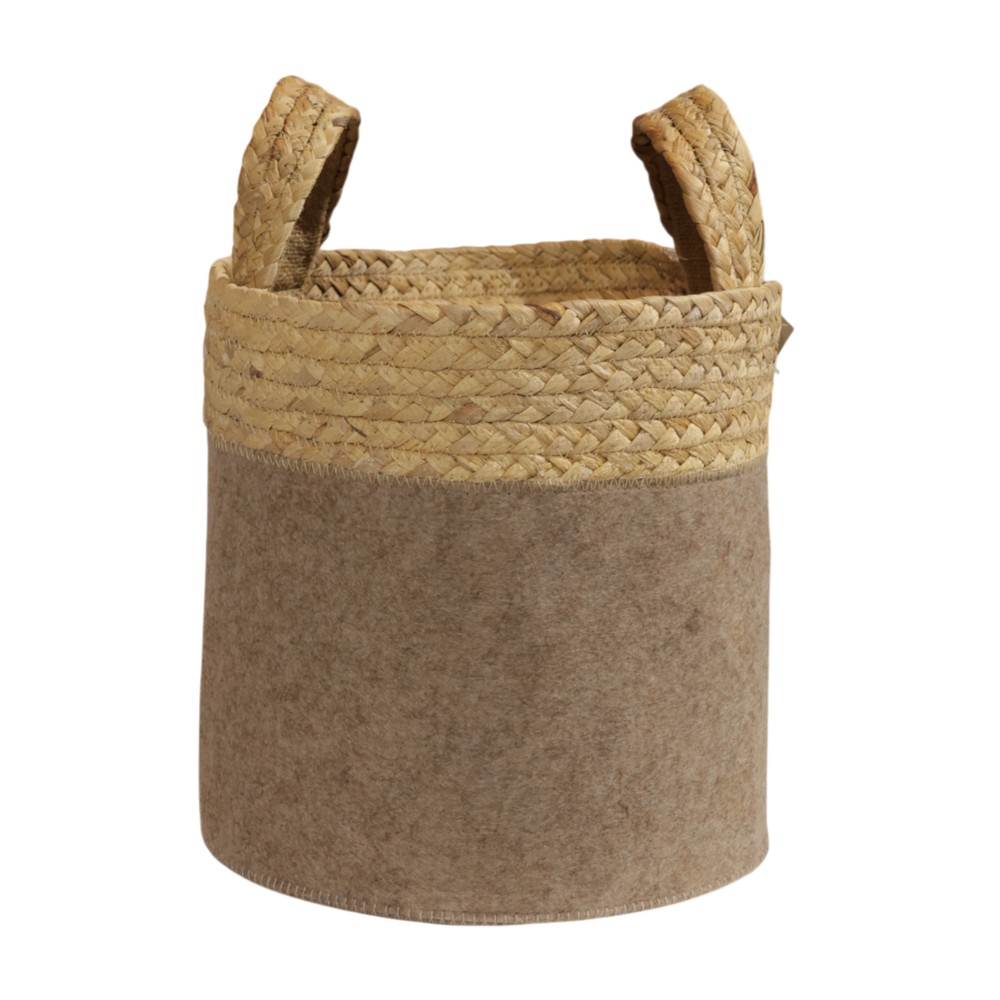 Shportë dekoruese prej kashtë me detaje në velvet rozë, që sjell një kombinim të rafinuar mes natyralitetit dhe butësisë së materialeve. Dizajni i saj i ngrohtë dhe ngjyra e butë rozë e bëjnë këtë shportë një aksesor të veçantë për çdo ambient, duke shtuar një prekje femërore dhe elegante në dekor. E përshtatshme për ruajtjen e sendeve të ndryshme, ajo kombinon funksionalitetin me stilin në mënyrën më të bukur dhe natyrale.