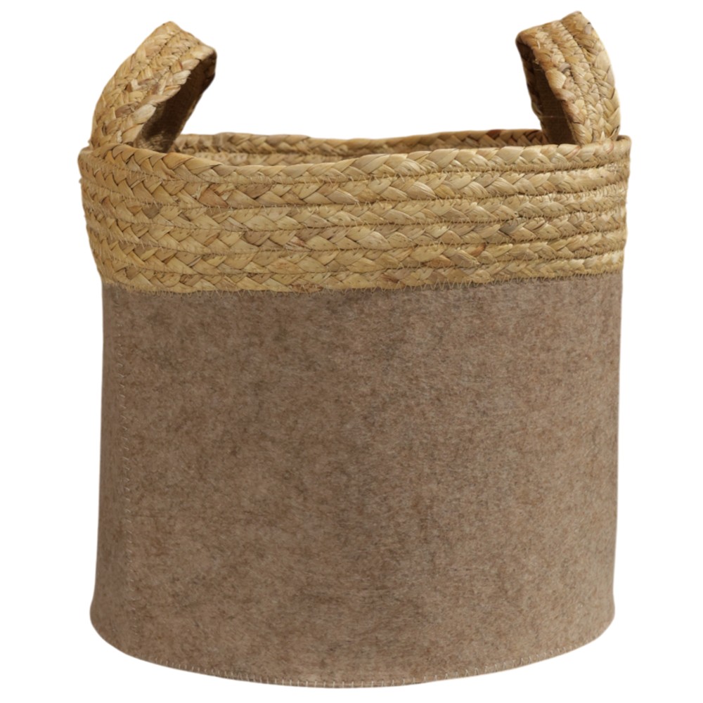 Shportë dekoruese prej kashtë me detaje në velvet rozë, që sjell një kombinim të rafinuar mes natyralitetit dhe butësisë së materialeve. Dizajni i saj i ngrohtë dhe ngjyra e butë rozë e bëjnë këtë shportë një aksesor të veçantë për çdo ambient, duke shtuar një prekje femërore dhe elegante në dekor. E përshtatshme për ruajtjen e sendeve të ndryshme, ajo kombinon funksionalitetin me stilin në mënyrën më të bukur dhe natyrale.