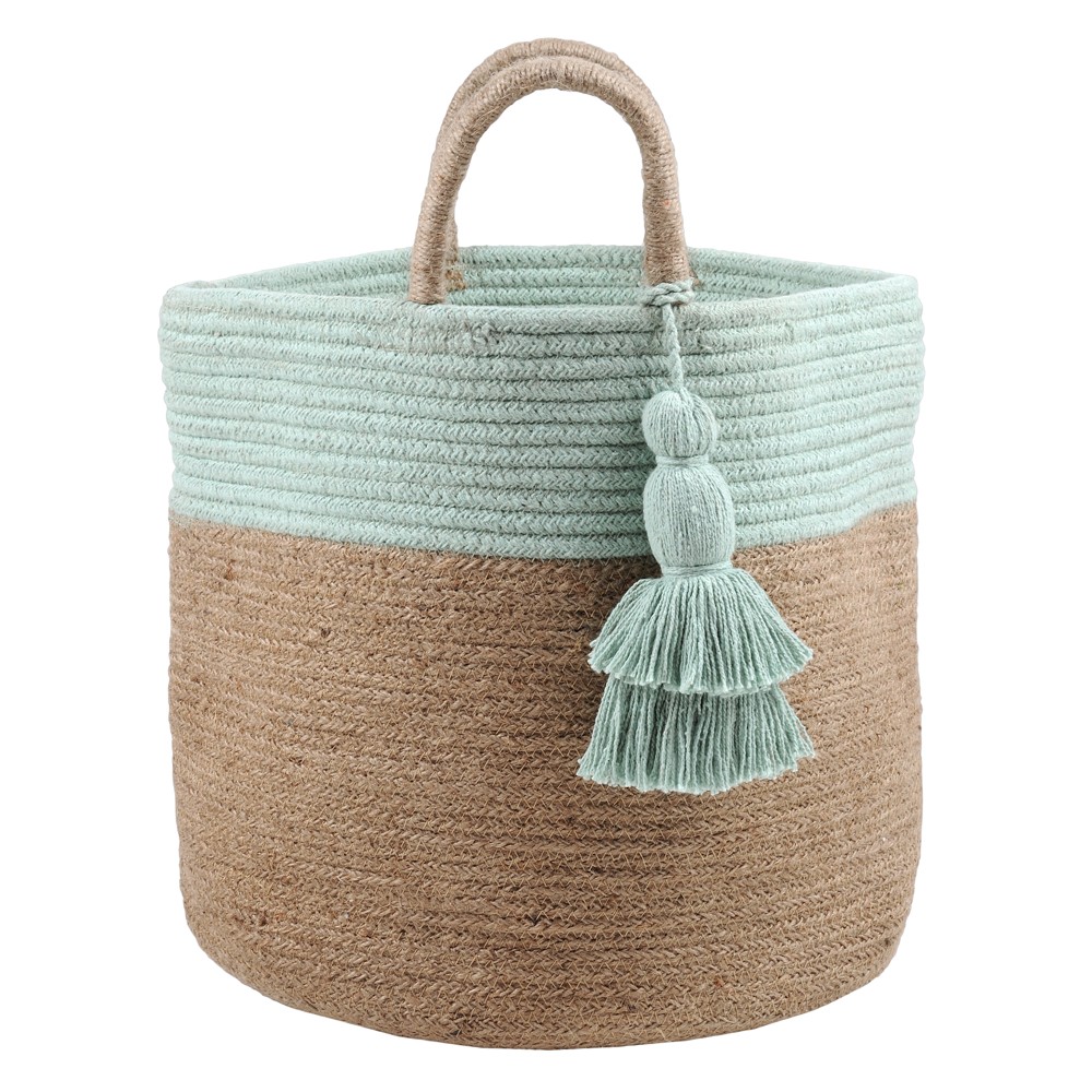 Shportë, kashtë+pambuk, e bojqelli/kafe, Ø30xH30 cm