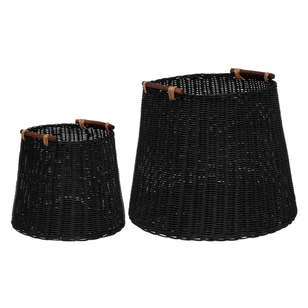 Shportë magazinimi, Ori, 2 copë, ratani, e zezë, Ø31xH28 cm; Ø45xH38 cm