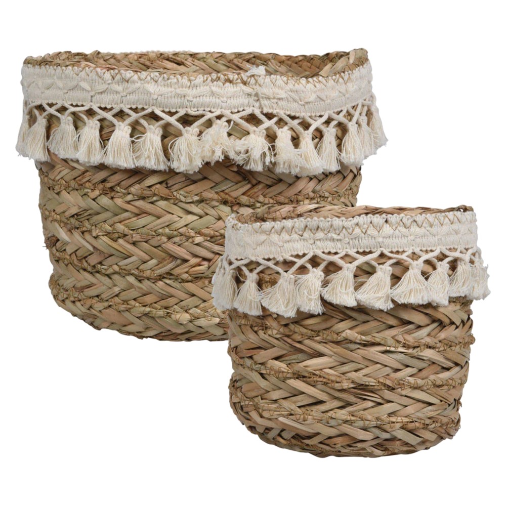 Po vlerësoni:Shportë magazinimi, set 2 copë, kashtë, natyrale, 15xH16 cm; 20xH18 cm