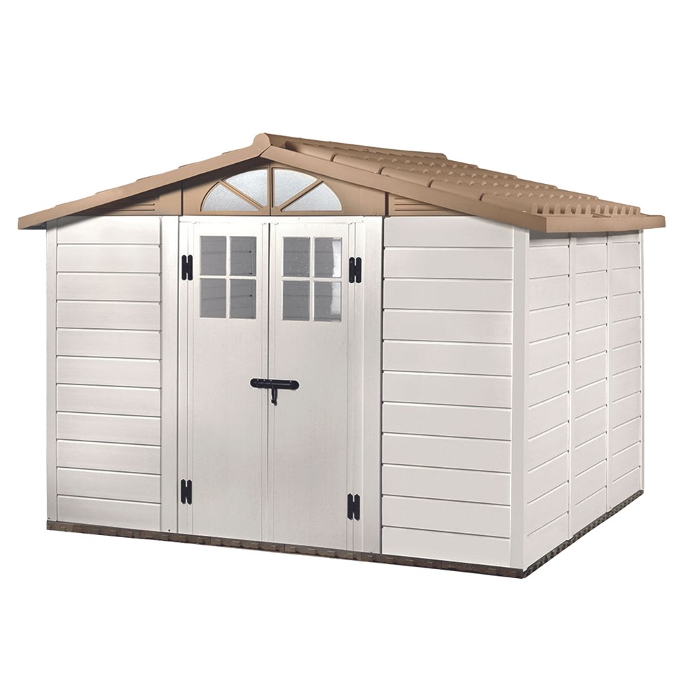 Shtëpia Garofalo PVC, falë përmasave të saj kompakte është e përkryer si për kopshtin ashtu edhe për veranden tuaj per ruajtjen e veglave te kopeshtit, shtepiza me materialin PVC është shumë i lehtë për t'u instaluar, rezistent ndaj motit të keq dhe rrezeve UV, ka dyshemenë të përfshirë dhe nuk kërkon mirëmbajtje. Dera mund të mbyllet me dry dhe shtëpia pastrohet shumë lehtë, materiali PVC i shtepizes mund te lyhet dhe ka 70 kg/m2 rezistencen ndaj ngarkeses se bores, përmasat 309 x 261 x 225 cm, dhe pesha 219 kg , ngjyra e bardhe - e bezhe.
