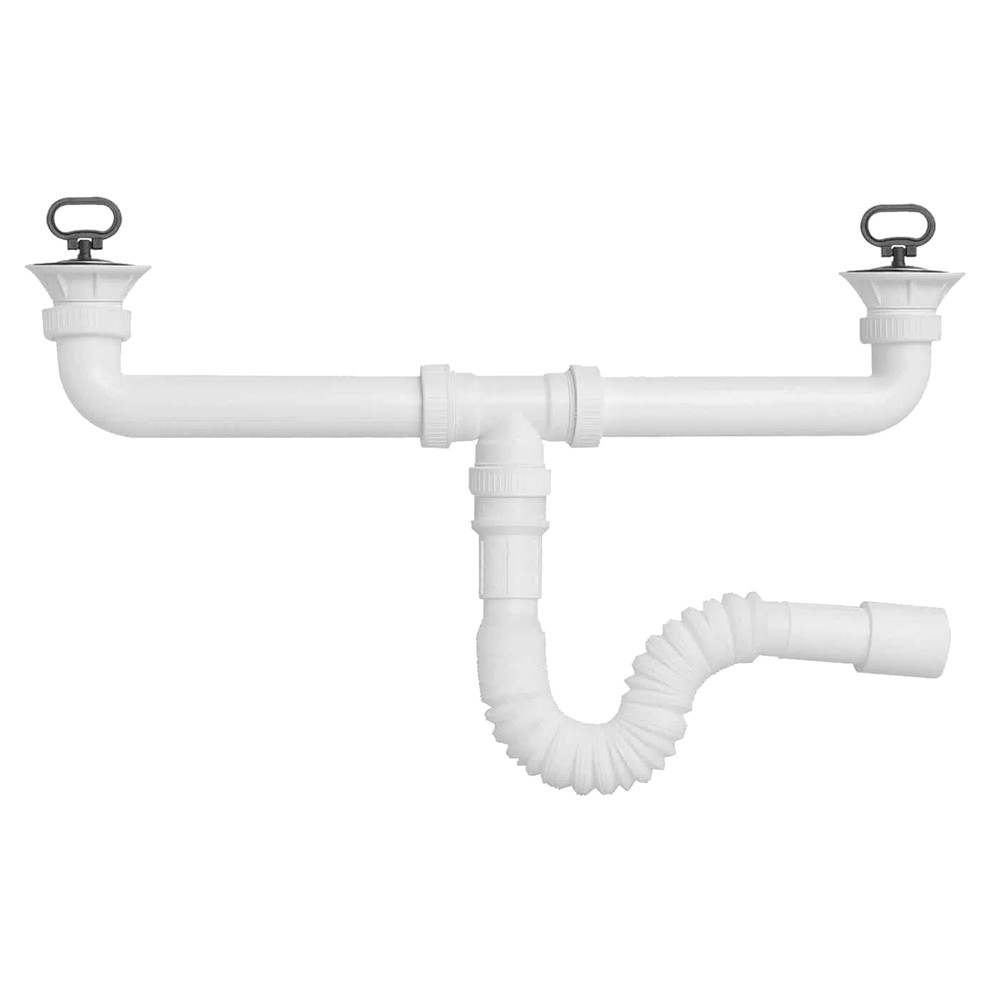 Sifon lavapjate set, me 2 pileta,+ tub fleksibël dhe 2 tapa, polipropilen, e bardhë, ø80, 1/1/2''x32-40 mm