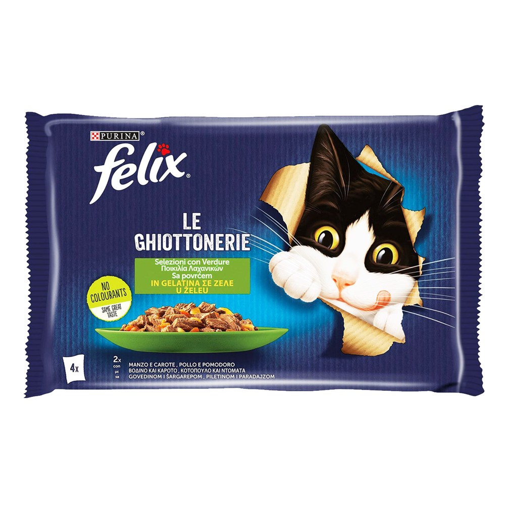 Po vlerësoni:Snack për mace, Felix, 4x85 g, 2 viç dhe 2 pulë
