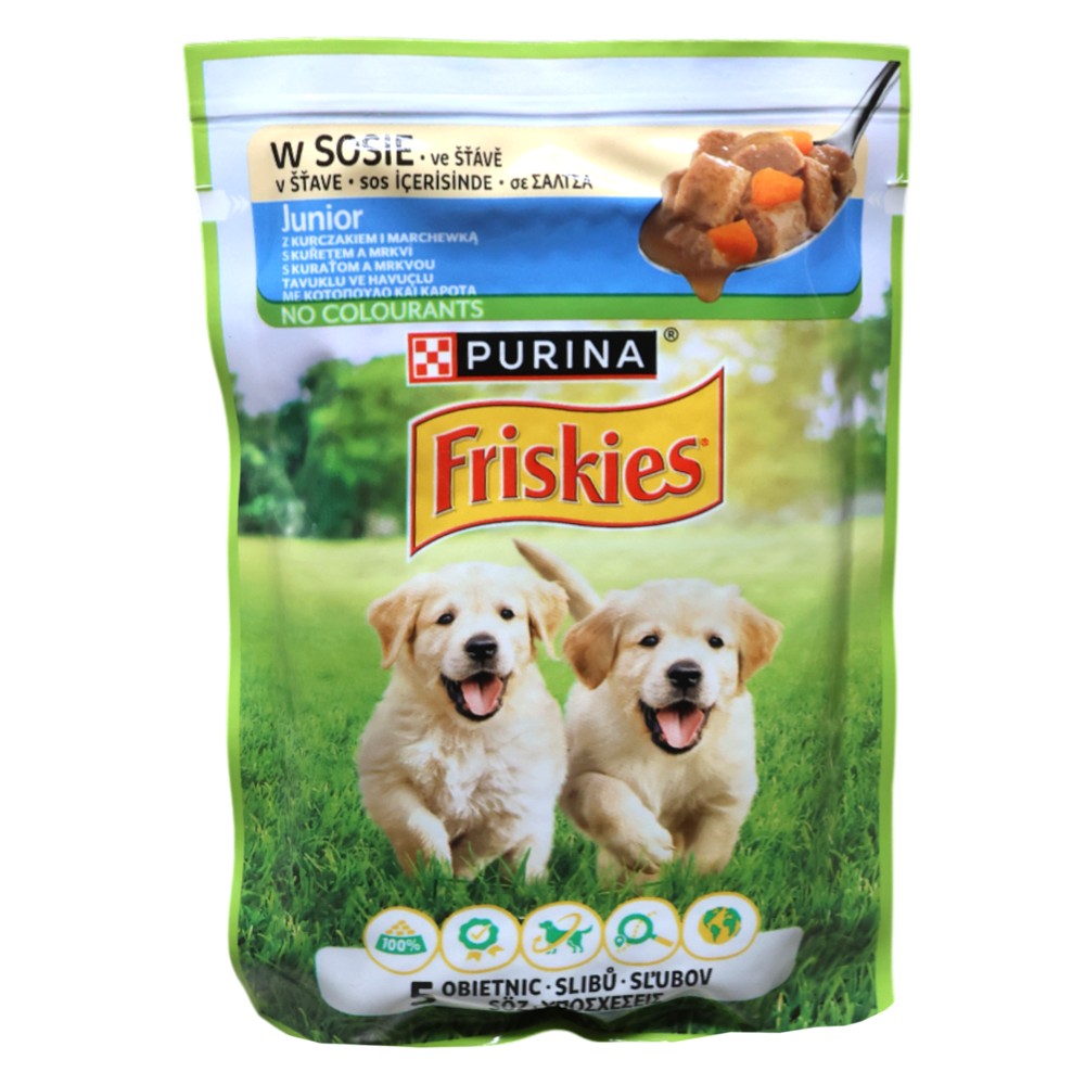 Snack për qen, Friskies, Dog Junior, 85 g, me mish pule dhe karrotë