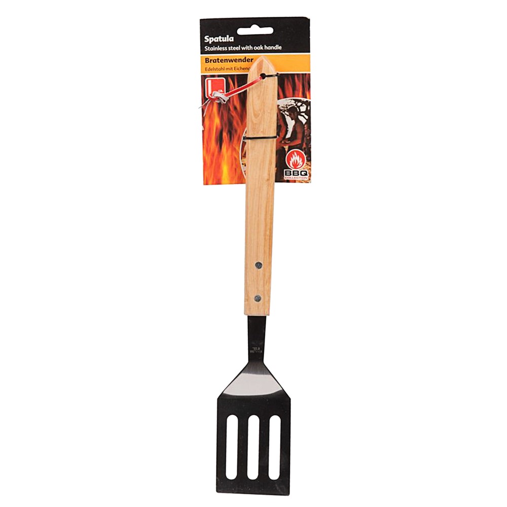 Kjo shpatull barbekjuje nga koleksioni BBQ është e domosdoshme për një festë komode barbekjuje në kopshtin tuaj. Spatula prej çeliku inox me dorezë lisi është rezistente ndaj nxehtësisë dhe e lehtë për t'u pastruar. Argëtohuni në skarë!