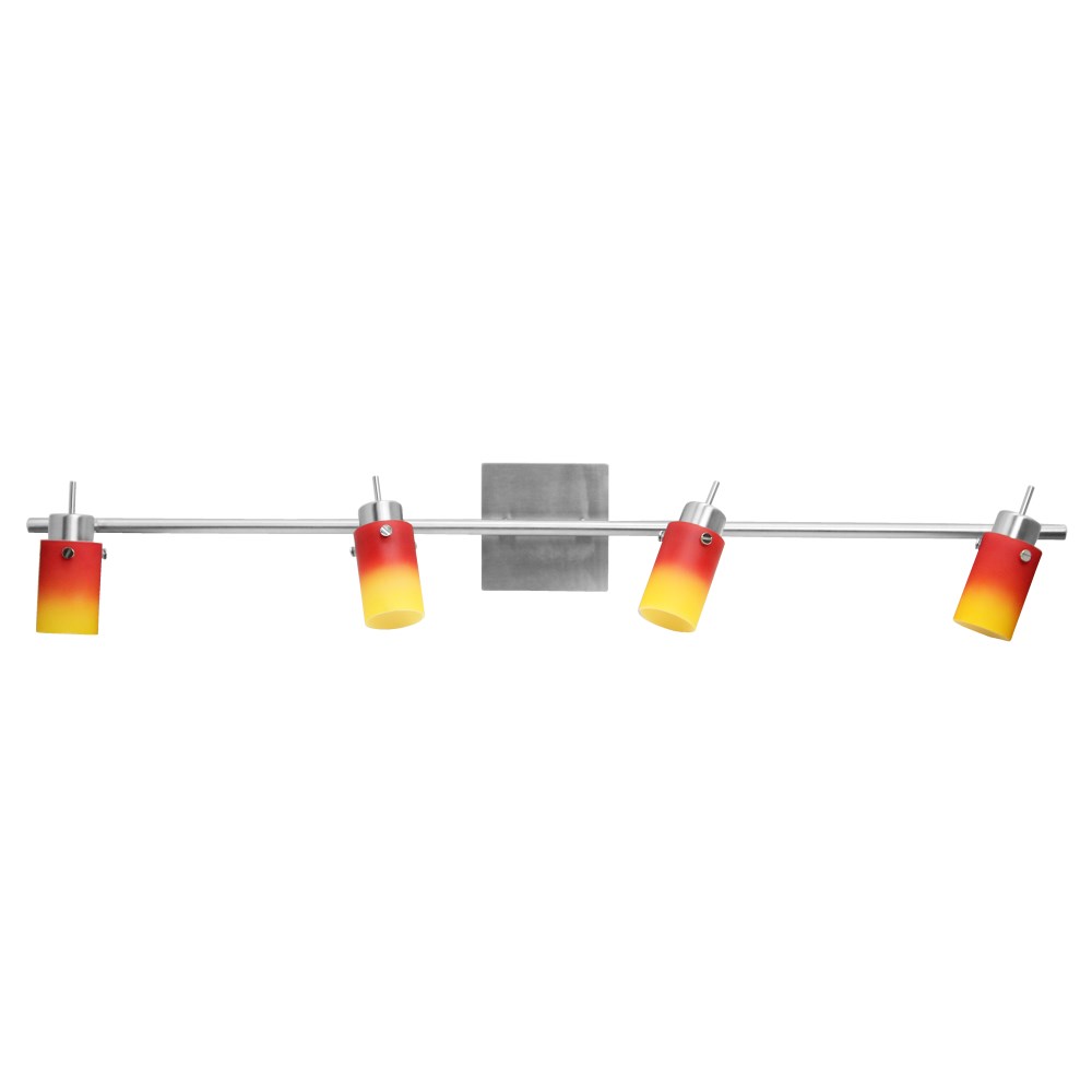 Po vlerësoni:Spot i varur G9-4x40W.Ngjyre krom satini me nje pllakez te sheshte dekorimi,xham ylberi.