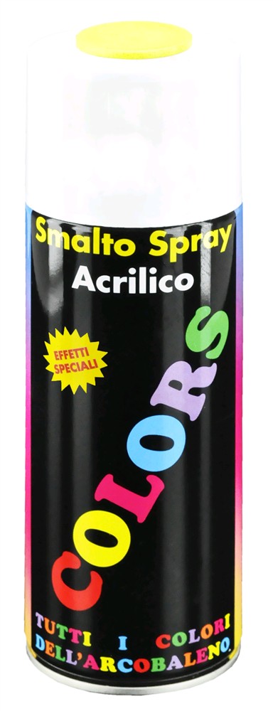 Sprai akrilik, 400 ml, ngjyrë e verdhë floureshente. Bojë zmalti akrilike. Përdoret për të lyer në metal, plastik, dru, qelq, qeramikë etj. Sipërfaqja para aplikimit duhet të jetë e pastër nga graso, pluhuri dhe ndryshku. Largësia nga sipërfaqja në momentin e sprucimit duhet të jetë 20-30 cm. Mbulon afërsisht 2 metër katror. Tundeni mirë para dhe gjatë përdorimit.