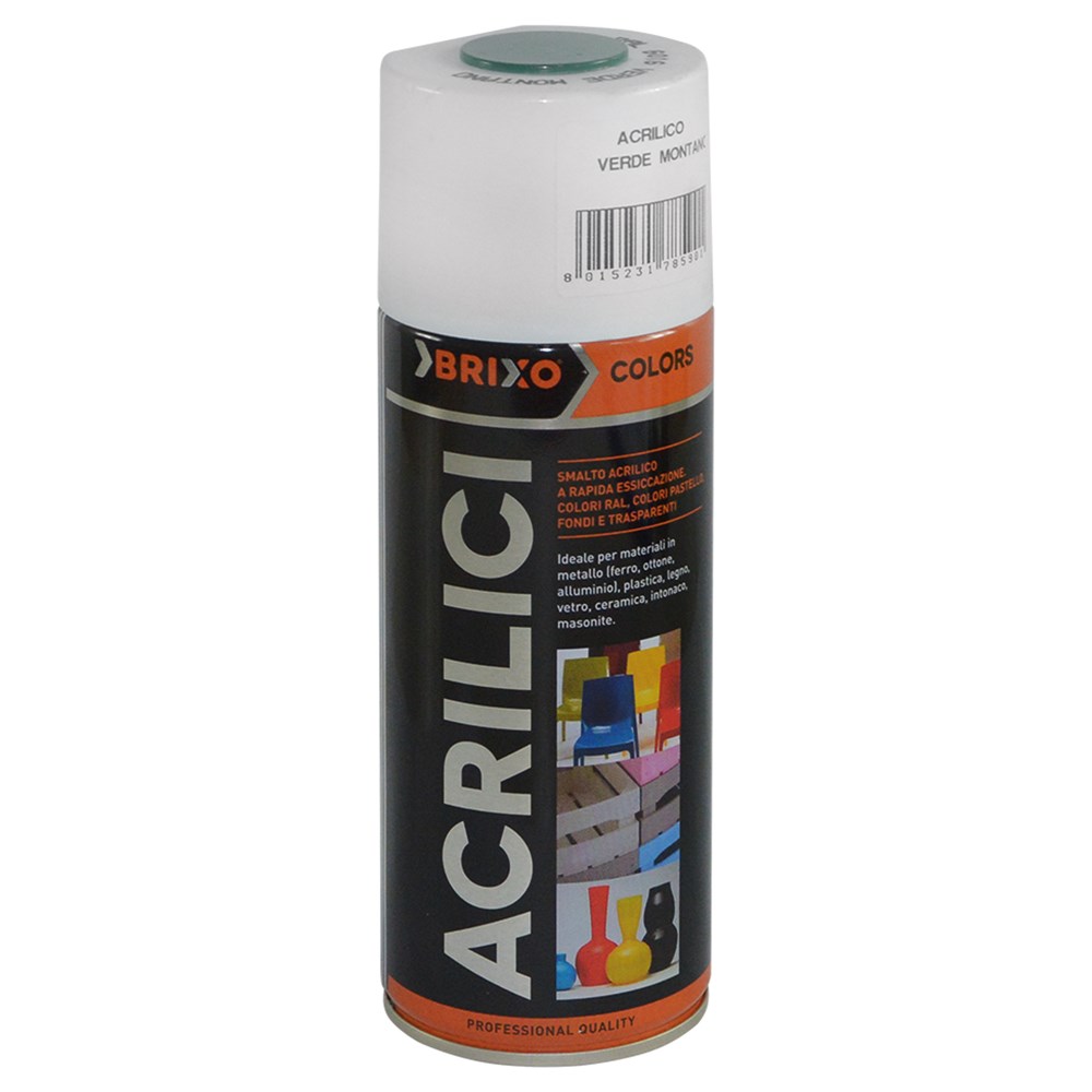 Sprai akrilik 400ml ngjyre jeshile. Boje zmalti akrilike. Perdoret per te lyer ne metal, plastik, dru, qelq, qeramike, etj. Siperfaqa para aplikimit duhet te jete e paster nga graso, pluhuri dhe ndryshku. Largesia nga siperfaqa ne momentin e sprucimit duhet te jete 20-30cm. Mbulon afersisht 2 meter katrore. Tundeni mire para dhe gjate perdorimit.