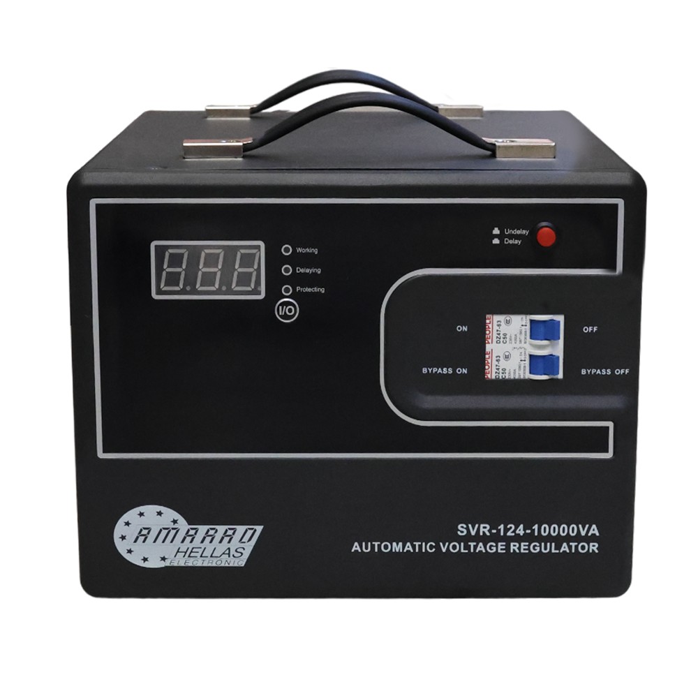 Stabilizatori i tensionit Amarad është projektuar për të mbajtur një tension të qëndrueshëm njëfazor në rastet e devijimit të tensionit të rrymës mbi një gamë të gjerë vlerash dhe kohëzgjatjeje. Mundësia e kontrollit të vazhdueshëm të tensionit të hyrjes dhe daljes ofrohet nga prania e një ekrani digjital multifunksional. Ky stabilizator ka nje fuqi prej 10 kVA (6000 W). Tensioni ne hyrje është 140V-260V AC 50/60Hz dhe ne dalje 220V AC 50/60Hz ±8%.