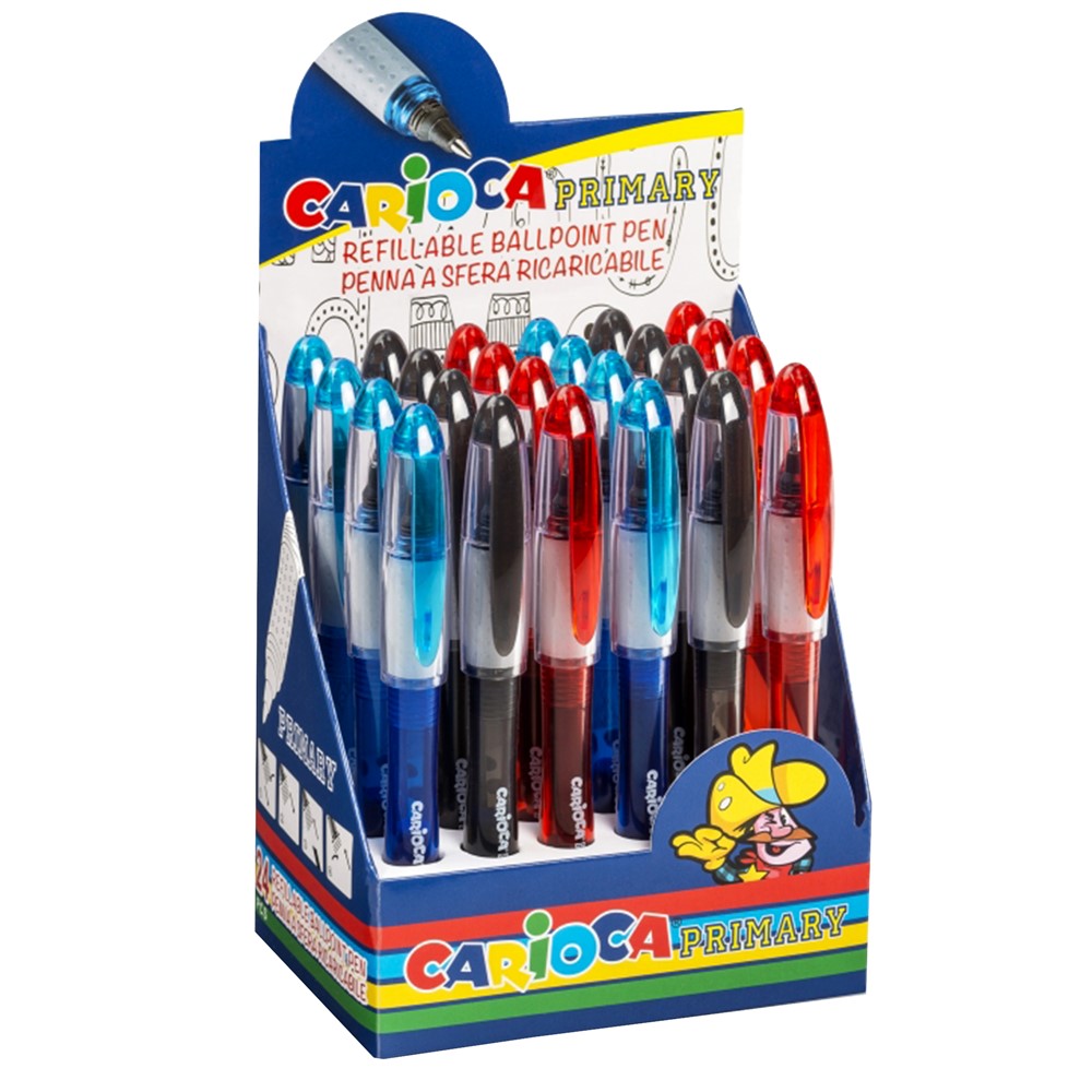 Stilolaps Carioca me kapak. E cila është e përbërë nga trupi plastik dhe me gominë në pjesën fundore kundër rrëshqitjes, në ngjyra të ndryshme trasparente dhe me majë metalike e cila shkruan shpejt, rrjedheshëm dhe pa lenë mbetje.