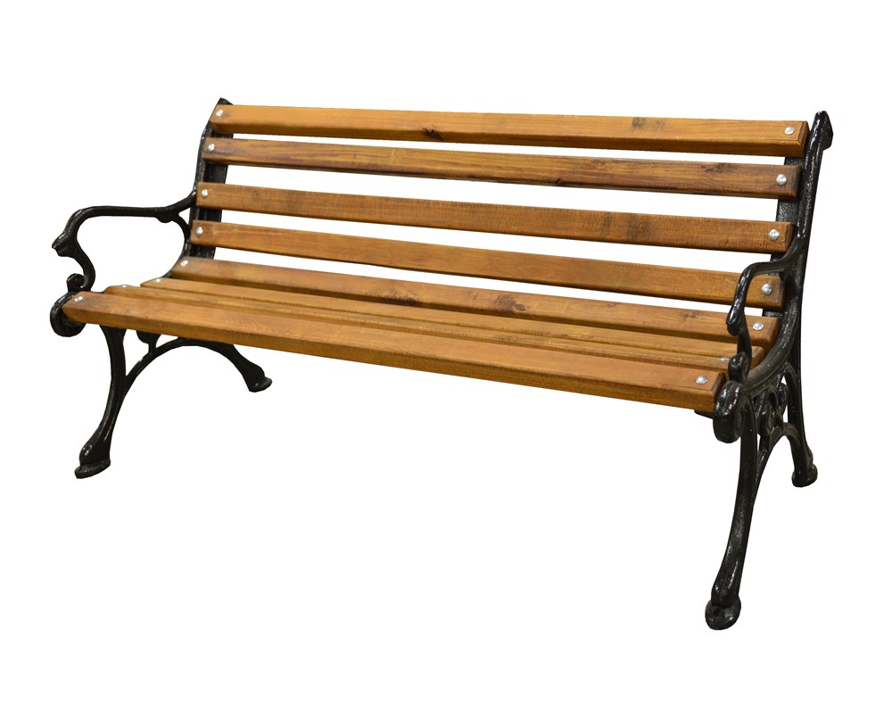 Stol me krahë gize, 150x60x75 cm dhe 8 ristela druri të lyera me bojë speciale me pjekje, për t'i rezistuar agjentëve atmosferikë dhe rrezeve UV.