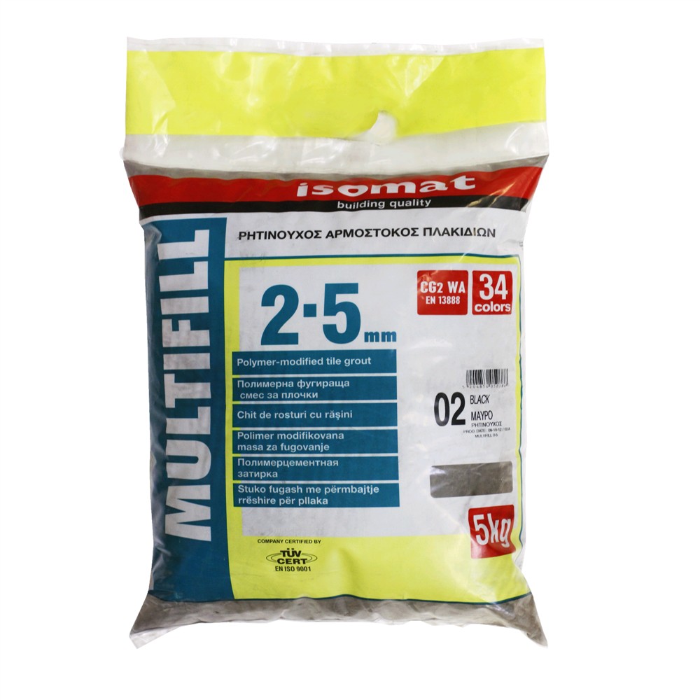 Multifill -Tile grout 2-5 është një stuko me ngjyrë me bazë çimentoje për pllakat. Ajo ofron fortësi mekanike dhe stabilitet të ngjyrës. E përshtatshme për fuga me gjerësi deri në 5 mm. Ajo klasifikohet si stuko për fuga pllakash e llojit CG2 sipas standardit EN 13888. Multifill -Tile grout 0-5 përdoret stukimin e fugave të pllakave në mure ose në dysheme, për përdorim në ambiente të jashtme dhe të brendshme.