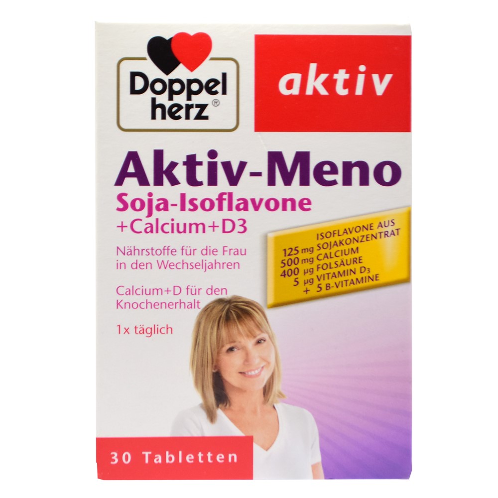Suplement ushqimor, Aktiv-Meno, me isoflavone soje, kalcium, D3. Doppel herz.