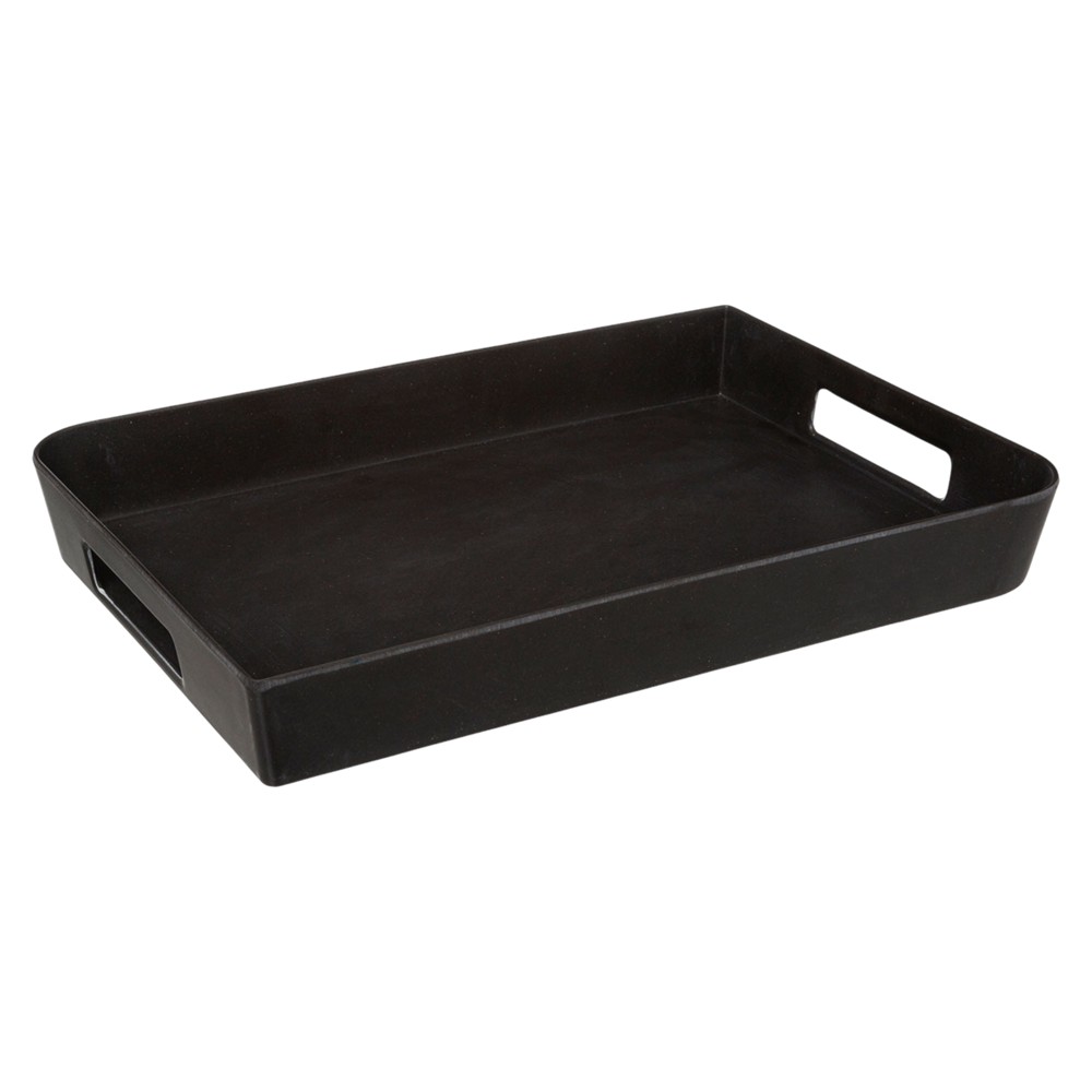 Tabaka për servirje me doreza për t'u ofruar mysafirëve tuaj kafenë ose pijen e tyre dhe t'u bëjë përshtypje atyre. E perbere nga melamine ne nuance te zeze. Përmasa 45 x 30 x H. 5.2 cm
